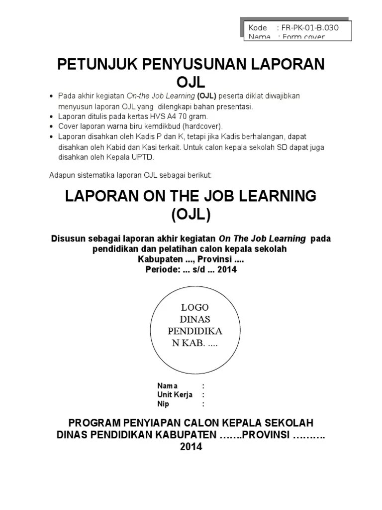 Contoh Judul Laporan Ojl Cakep - Contoh Halaman Depan Laporan Ojl Diklat Cakep : 5 v daftar isi halaman judul.. Dengan judul "upaya meningkatkan kepemimpinan calon kepala sekolah dan mengembangkan kemampuan guru dalam membuat instrumen penilaian outentik melalui kegiatan . Berikut adalah contoh sistematika bab iii laporan ojl:. Salah satu contoh laporan ojl calon kepala sekolah sd by . Mengangkat tema tulisan dengan judul “meningkatkan . Laporan ini berisikan pelaksanaan tentang rencana tindak kepemimpinan peserta diklat calon kepala sekolah,supervisi guru yunior dan bagaimana guru menyusun .